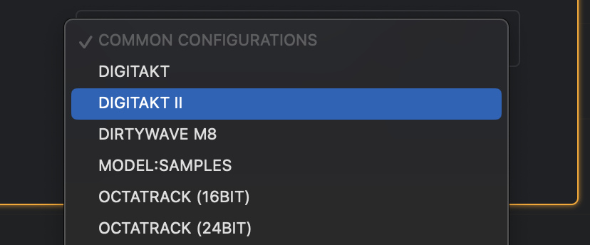 If the sample list is empty, choosing an option from the ‘Common Configurations’ list will set both the Working Sample Rate and the Target Sample Rate to the same value.