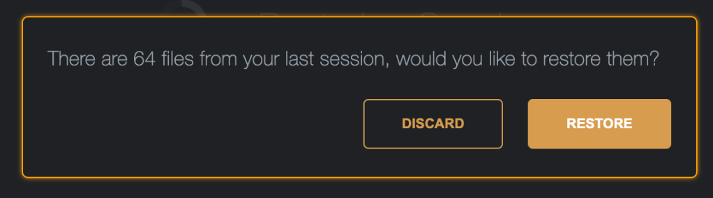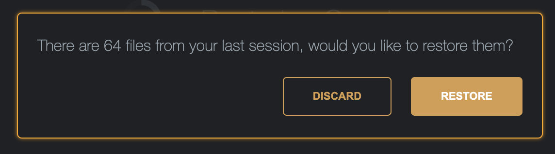 Discard will remove these files from the temporary storage and restore a fresh session, Restore will bring back the files into the list.