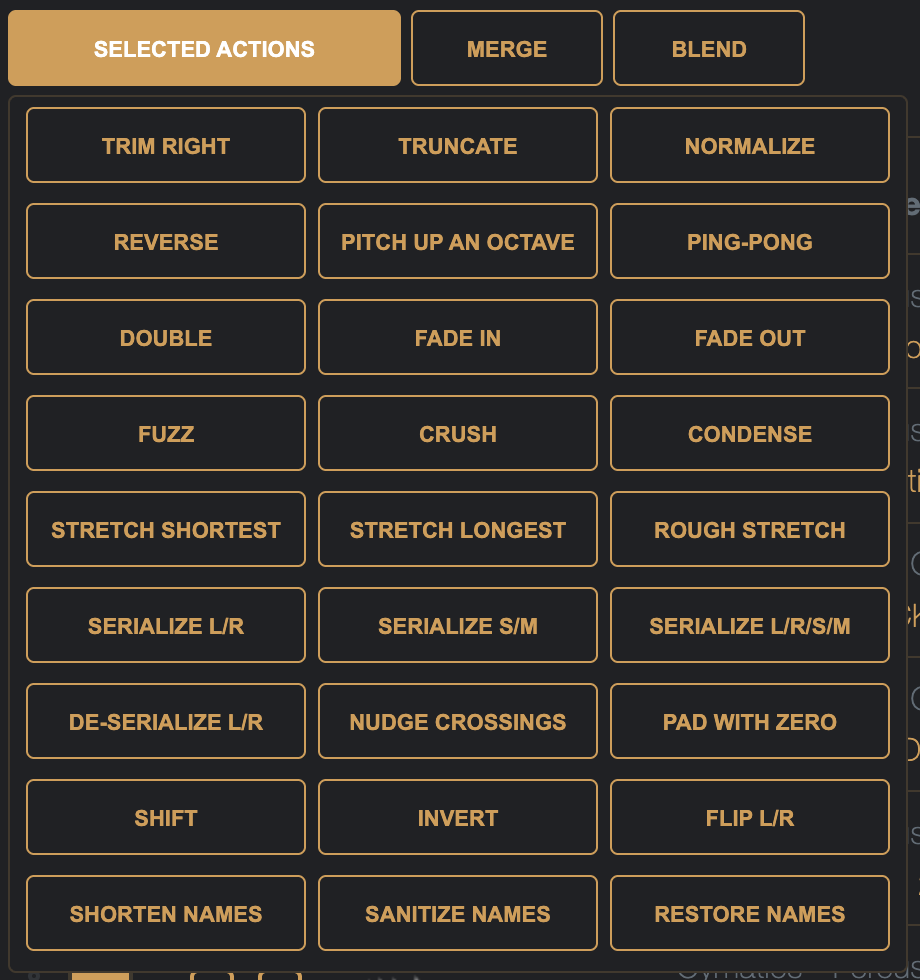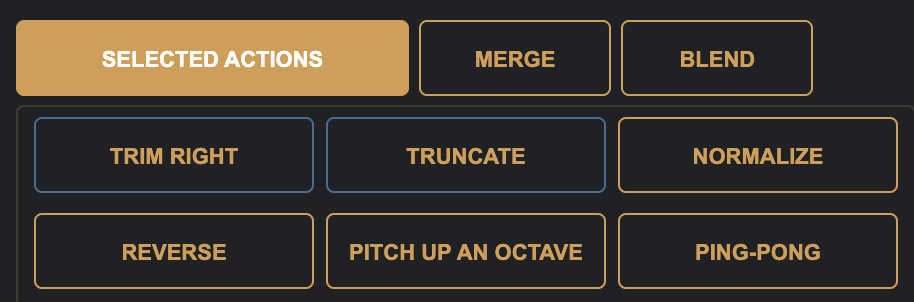 To reduce the length of the samples, we can use the Selected Actions, click the Selected Actions button to expand these options