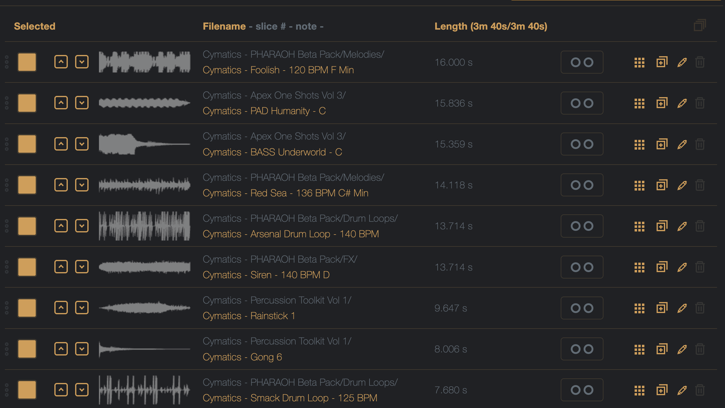 The brings the list from 4m 20s, down to 3m 40s – still too long ideally for a sample chain for the Digitakt.