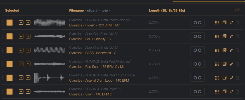 Now, all of the samples are a maximum of .75 seconds in length.