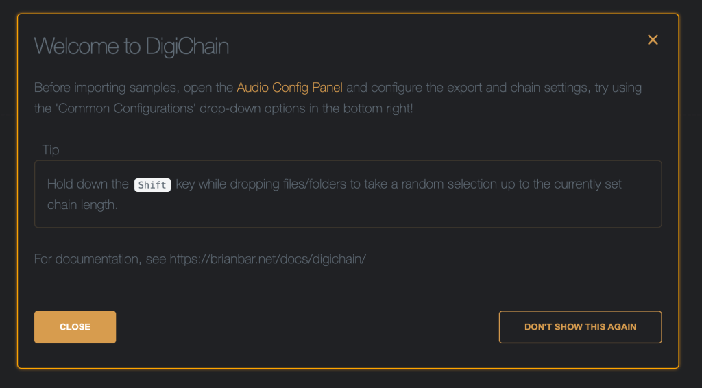 Chains auto-imported back to list – when on, most chains created will be rendered to the top of the list as a new sample; when off, the files will be presented for download inside a zip file.